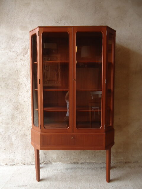 MF295 Publicerat den augusti 23, 2019 vid 480 × 640 under Antika/äldre förvarningsmöbler SÅLD Vitrinskåp mahogny, 1950-tal, gesällarbete. Höjd 172, bredd 99, djup 37 cm.