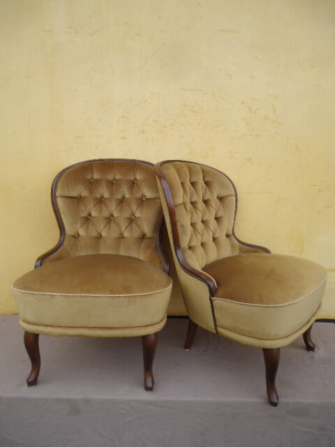 AÄSL400 Publicerat den november 14, 2019 vid 480 × 640 under Antika/äldre förvarningsmöbler SÅLD 2 st sammetsfåtöljer höjd 85, sitthöjd 40, bredd 60 cm. 1500:-/ paret.