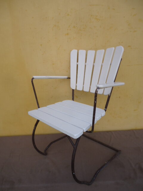 TM134 Publicerat den maj 7, 2019 vid 480 × 640 under Antika/äldre sitt/liggmöbler SÅLD Trädgårdsstol höjd 85, sitthöjd 43, bredd 60 cm. 450:-