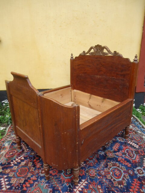 AÄSL390 Publicerat den augusti 15, 2019 vid 480 × 640 under Antika/äldre sitt/liggmöbler SÅLD Säng höjd 115, bredd 104, bäddmått ca 90 x 180 cm.