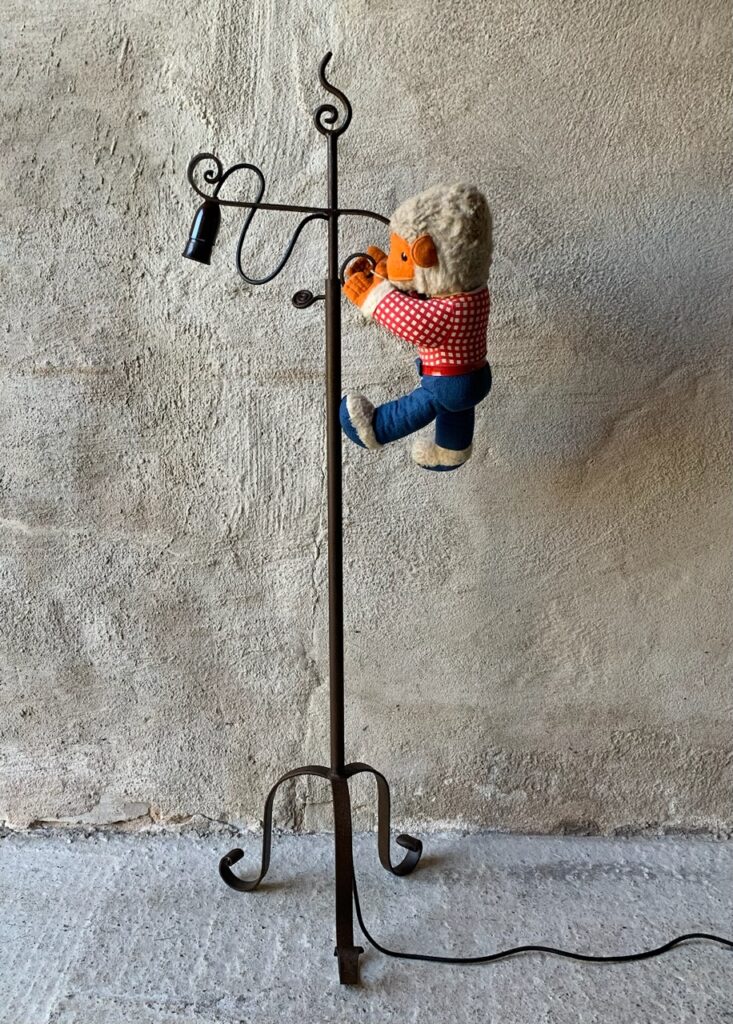 Den är i glas och mässing formgiven av Olle Alberius för Orrefors.
