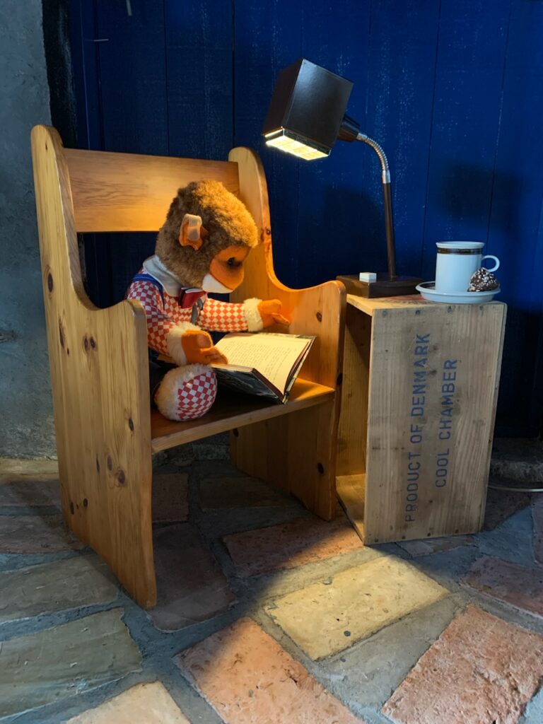 Här sitter vännen och läser i skenet från skrivbordslampan ”Kuben” formgiven av Hans-Agne Jakobsson. Se pris här: modern belysning.
