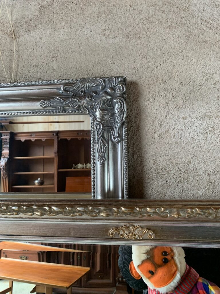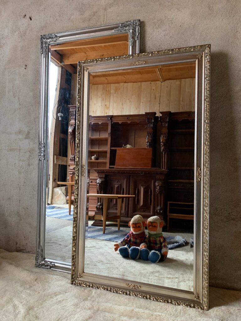 Stora speglar med fasettslipar glas och silverfärgade ramar.