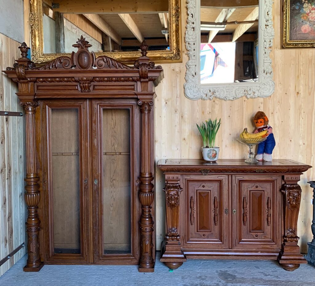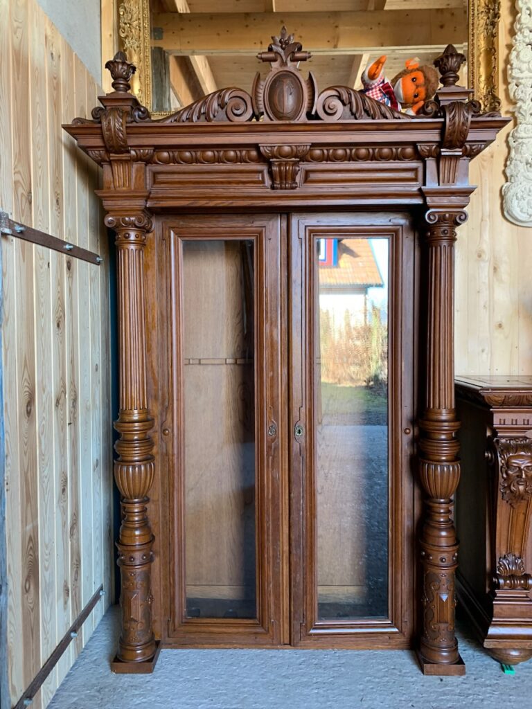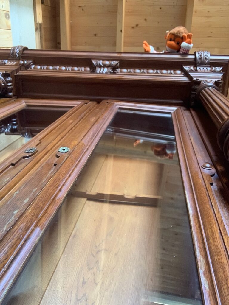 Det här fantastiska skåpet var så högt så att det inte fick plats hos oss så vi fick ställa det i två delar. Hela 300 cm högt, 130 brett och 50 cm djupt.