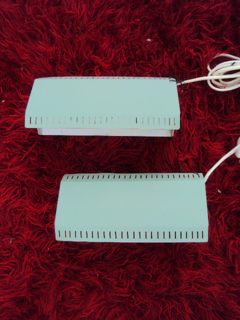 MBE31,32 Publicerat den juli 31, 2013 vid 480 × 640 under Modern belysning SÅLD 2 st nattlampor från 1950-tal i ljusgrön plåt.