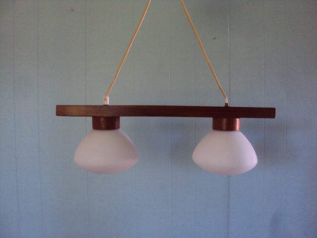 MBE44 Publicerat den augusti 29, 2013 vid 640 × 480 under Modern belysning SÅLD Teaklampa med två vita glaskupor 57 cm bred.
