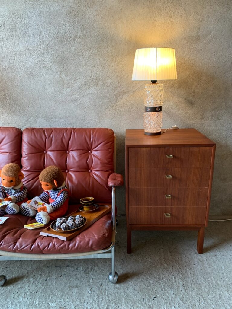 Ni hittar mått och pris på teakbyrån här: moderna förvaringsmöbler och på lamporna här: modern belysning.