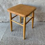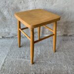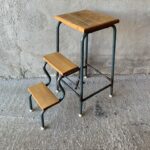 - Pinnstol med teaksits. Höjd 80, sitthöjd 42, bredd 43cm. 350:-