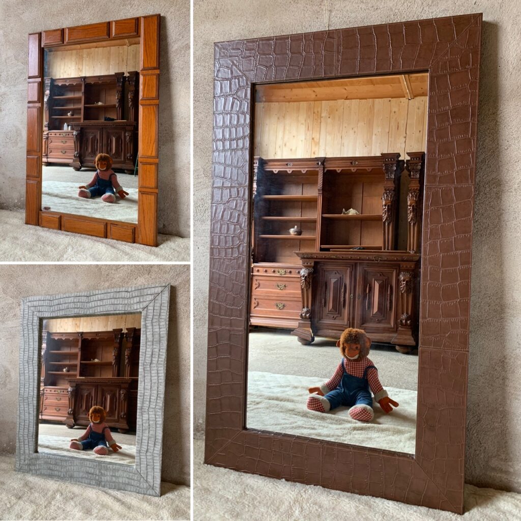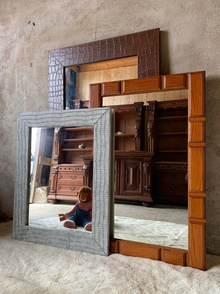 Vi fortsätter att fylla på med speglar. Här har vi en retrospegel i trä och två i läder.