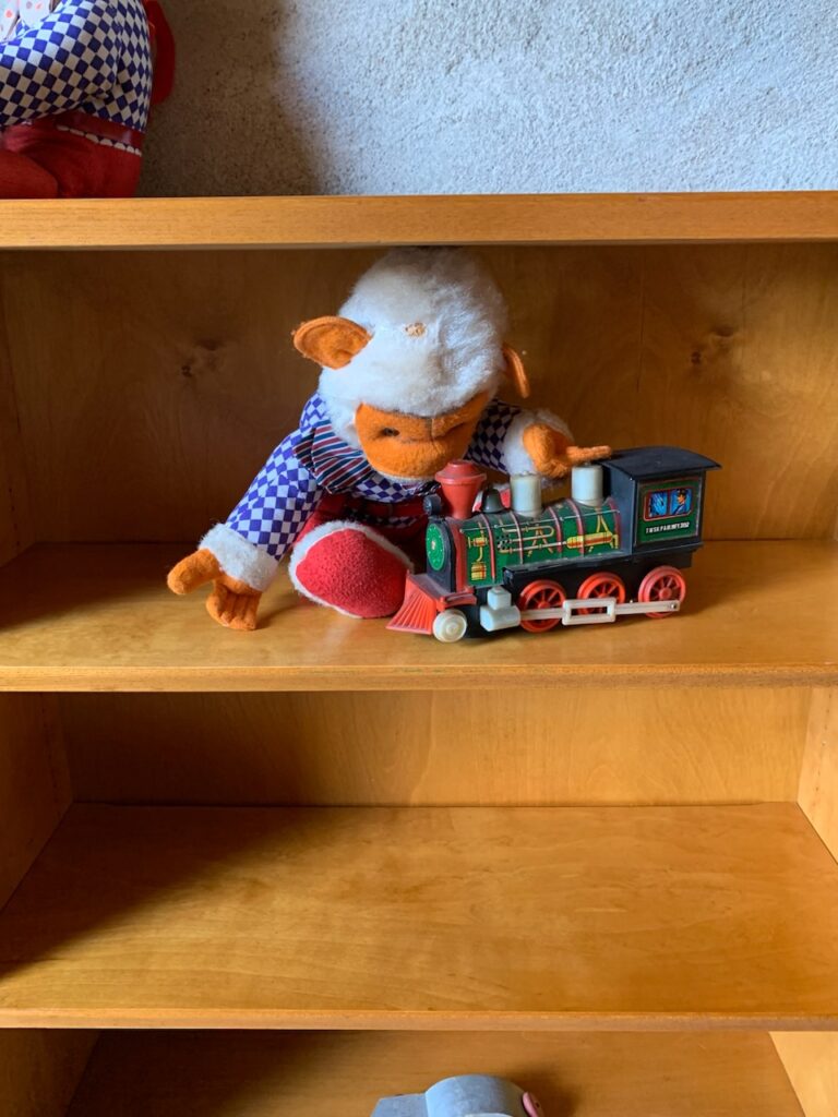 En retrohylla som passar utmärkt till t.e.x. leksaker.