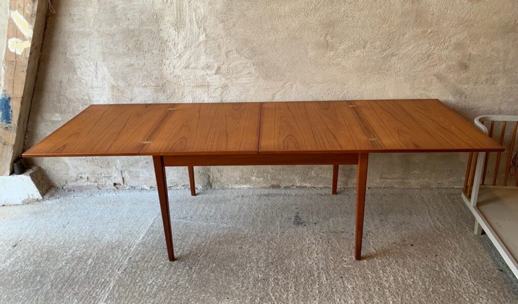 Här har vi ett matbord i teak från Skaraborg möbelindustri Tibro.