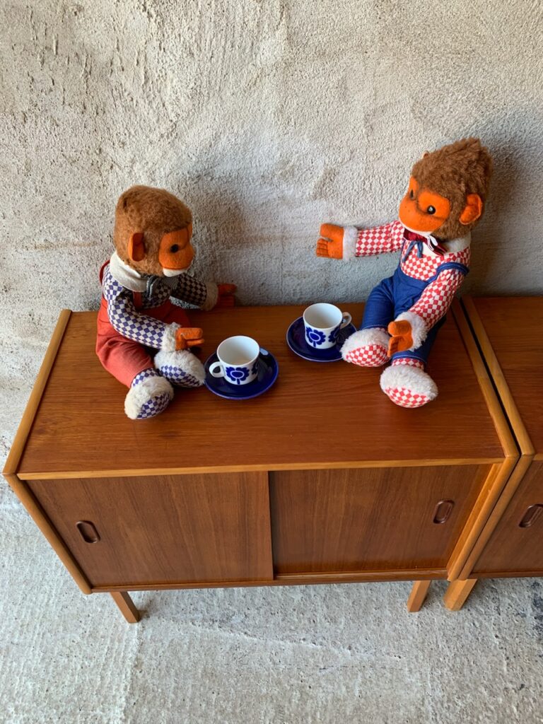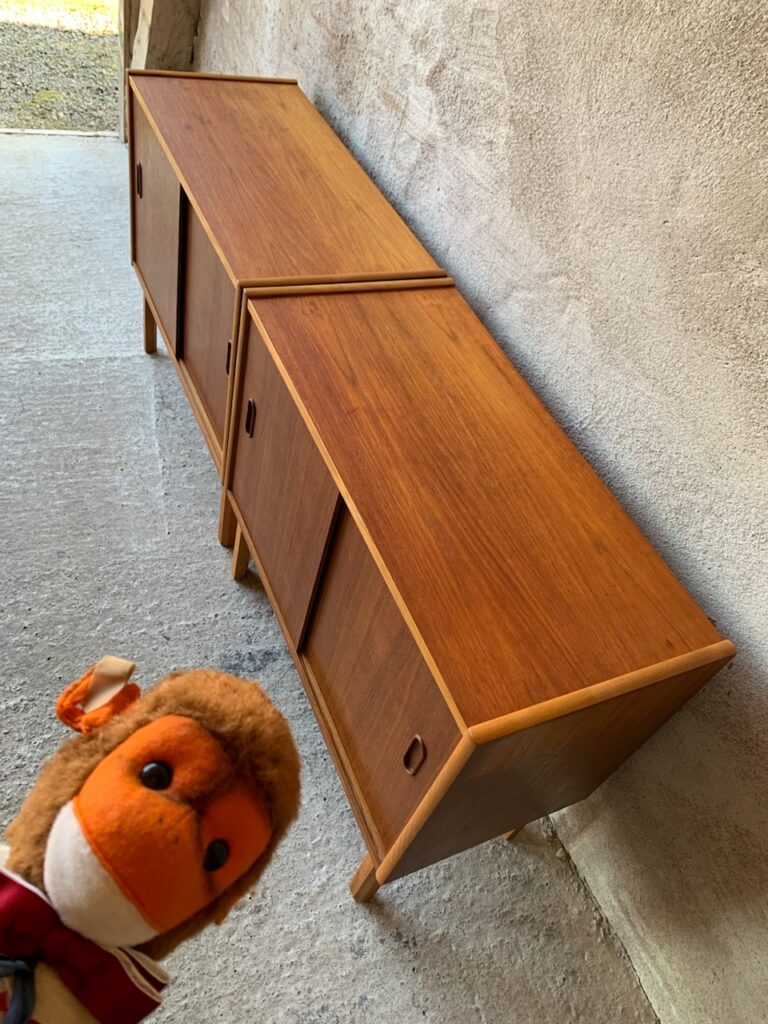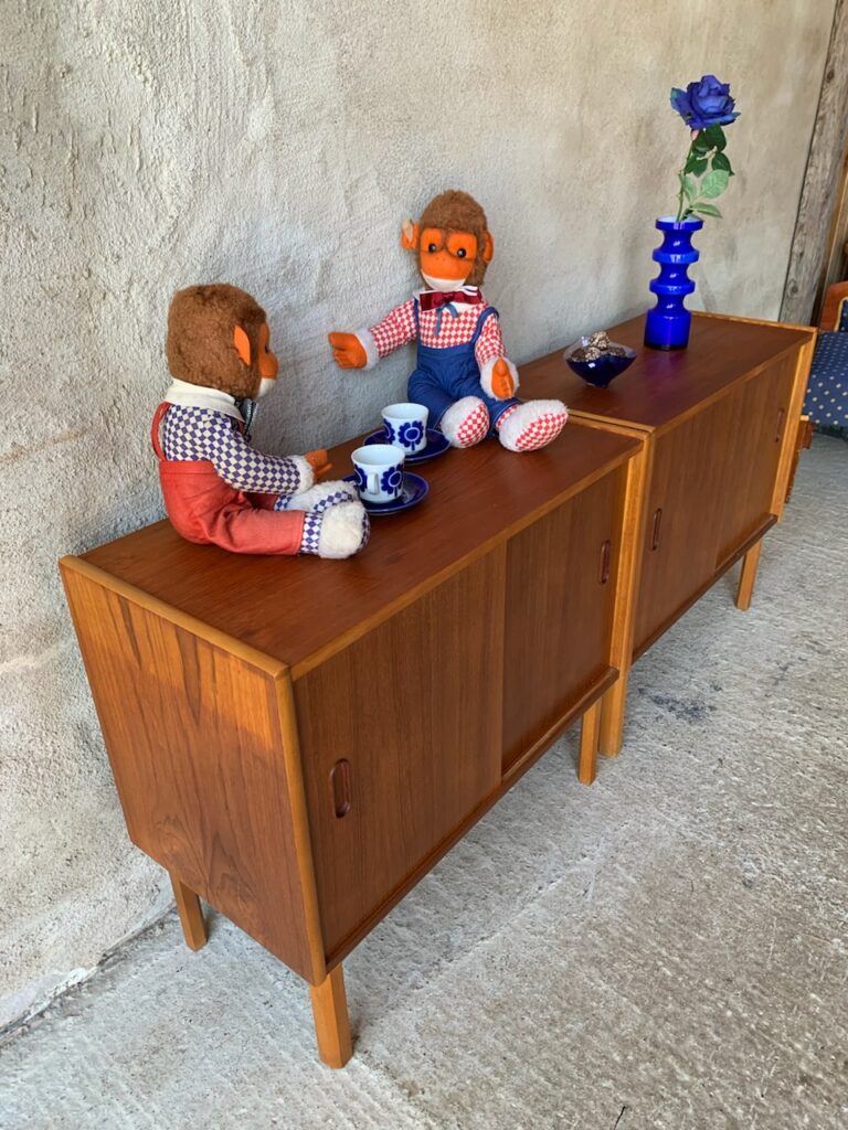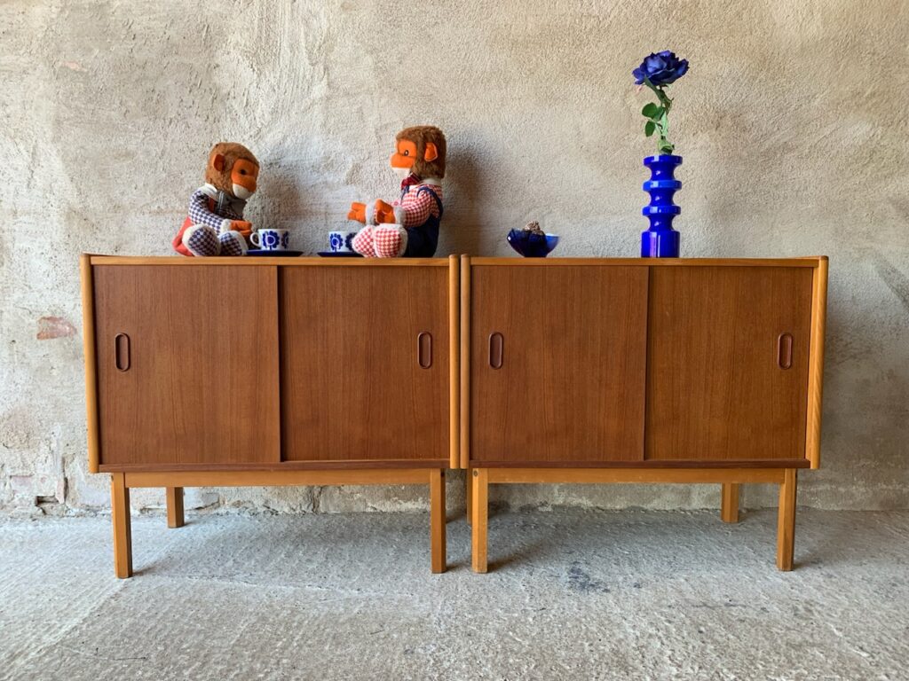 Två teakskänkar med skjutdörrar.